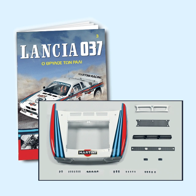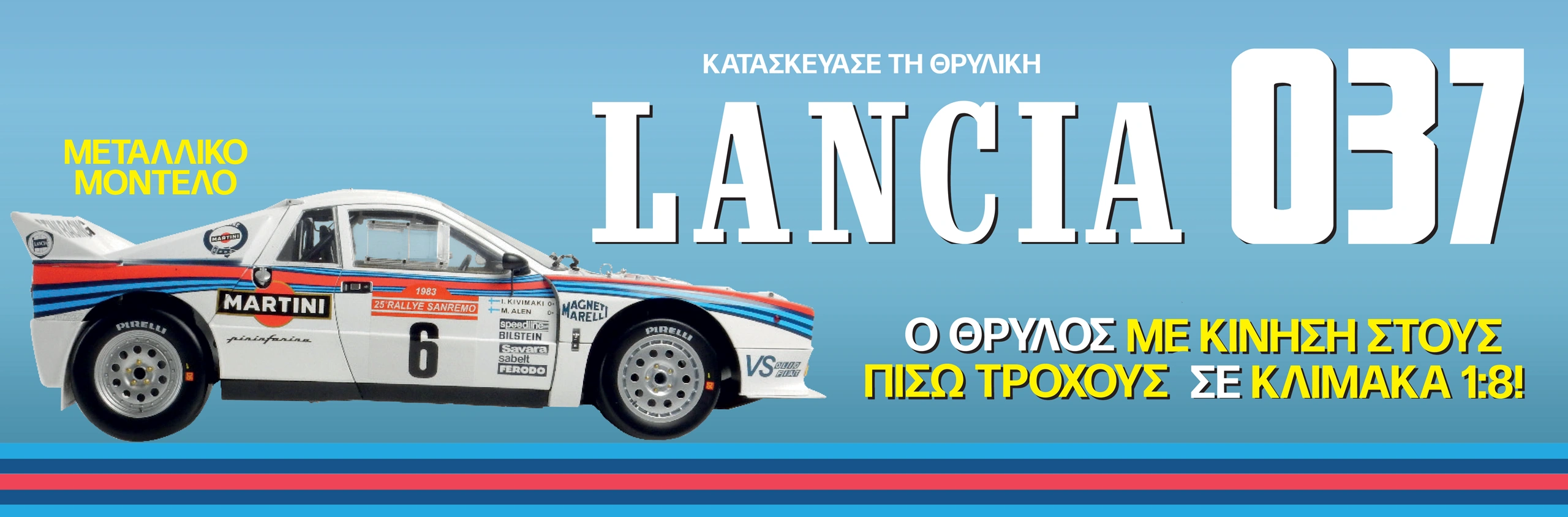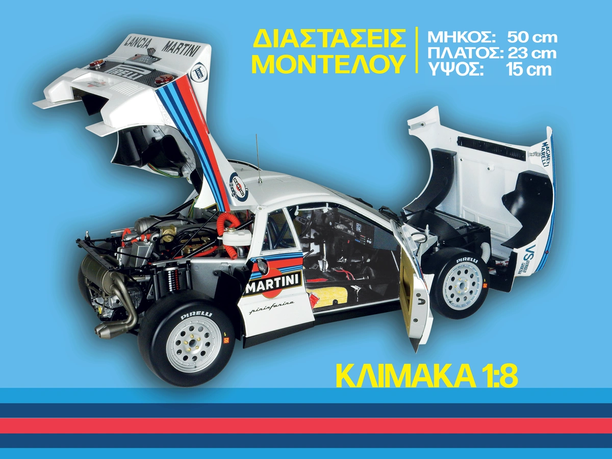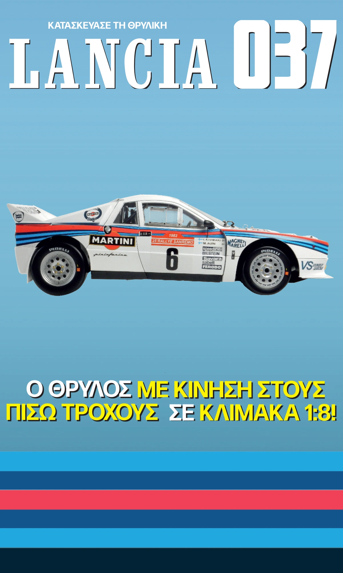 Τέλεια αναπαραγωγή της Lancia 037 που θριάμβευσε στο Παγκόσμιο Πρωτάθλημα Ράλι του 1983. Αυτό το μοντέλο είναι κατασκευασμένο με μεταλλικό αμάξωμα και είναι πλήρες με όλους τους εσωτερικούς μηχανισμούς: ο τετρακύλινδρος κινητήρας, οι αναρτήσεις, τα βοηθητικά συστήματα αναπαράγονται πιστά με το υψηλότερο επίπεδο λεπτομέρειας και είναι προσβάσιμα χάρη στα ανοιγόμενα μέρη.
